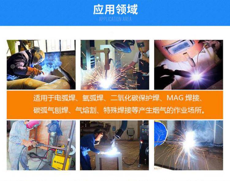适用于电弧焊、二氧化碳保护焊、MAG焊接、碳弧气刨焊、气熔割、特殊焊接等产生烟气的作业场所。